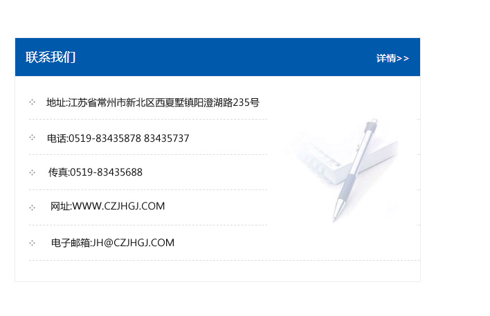 傳真:0519-83435688    郵編:213135    網址:WWW.czjhgj_com.hnlhfy.com    電子郵箱:JH@czjhgj_com.hnlhfy.com